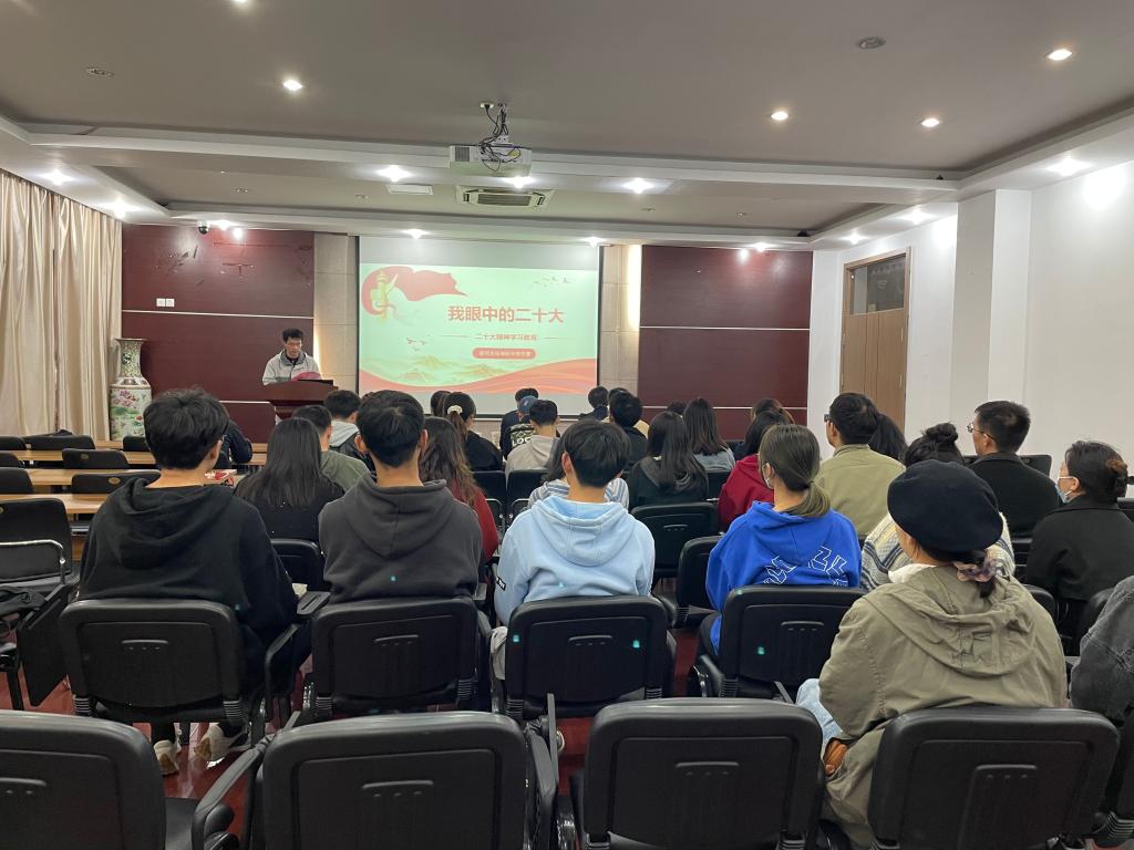 严普认为党的二十大是今年党和国家政治生活最重要的一件事,受到国内国际广泛关注,我们需要深入学习贯彻党的二十大精神,深刻理解习近平总书记的二十大报告,从自身做起,担负起新时代的重任。研究生环境科学党支部书记王芮引用二十大报告中的环境论述,详细讲解了新时代高质量发展方式的绿色转变,要尊重自然,顺应自然,保护自然,加快发展方式绿色转型。支部宣传委员季亚卉从坚守党员初心,时刻进行自我革命角度,强调入党是需要我们用一生去践行党员标准的过程。各年级代表也将自己关于党的二十大精神学习成果向大家进行了分享。分享交流后严普带领支部党员进行了二十大报告论述知识问答并阐述问题背后的内在含义。