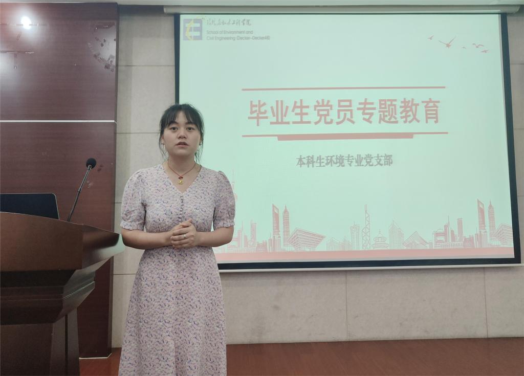 6月1日,环境与土木工程公司本科生环境专业党支部在D303会议室组织开展了“学悟新思想,奋斗正青春”本科生党员专题教育,并召开了2023上半年党员发展会议。环境与土木工程公司党委副书记兼副经理胡娟、本科生环境专业党支部书记周佳赟、支部委员李东辉以及支部全体党员参加会议。会议由周佳赟主持。