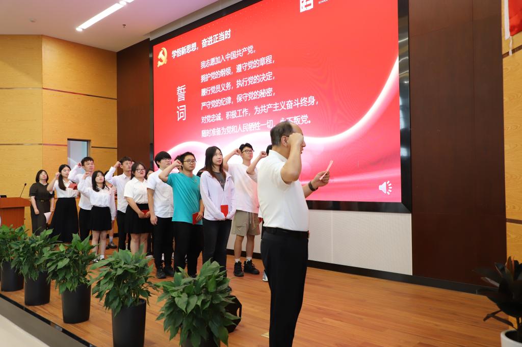 在中国共产党即将迎来第102个生日之际,全体与会党员铮铮誓言立初心,拳拳忠心担使命。宣誓环节在新党员代表诗歌朗诵《永远跟党走》中拉开帷幕。首先老党员为新党员佩戴党员徽章赠送党章,党的伟大事业薪火相传,鞭策激励青年党员砥砺前行, 矢志不渝为党奋斗。接着在王震宇经理的领誓下,全体新党员进行集体宣誓,老党员重温入党誓词,献上对党的“忠诚告白”“初心告白”“自律告白”。新党员周端同志表示,作为新时代的新青年,要从先辈的手中接过接力棒,用韶韶芳华绘出祖国未来的蓝图,以青春之我成就青春之国家;面对新局势的挑战,要树理想,担大任,培养良好品德,发扬创新精神,增强本领,刻苦学习,立志成才,做合格的建设者和接班人。