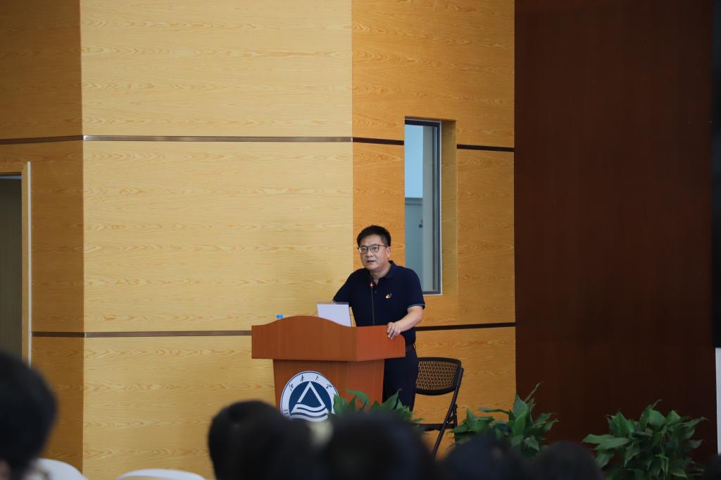 接着,宜兴市环保科技工业园党工委委员、宜兴市高塍镇党委书记、公司九六届员工史旭辉作了“深化校地合作,打造环保之都——当前宜兴环保产业发展的机遇和挑战”的专题讲座。他详细阐述宜兴环保产业踔厉奋发的发展历程,并指出在党的二十大精神指引下,宜兴环保产业抢抓机遇、勇毅前行,持续深化产学研合作、国际化协作,环保领域投资逐年攀高,知名度、影响力日益彰显。他祝福母校越办越好,希望以东氿校区建设为纽带,持续深化校地合作,公司继续发挥人才、教育、科技优势,为推动绿色低碳科技成果的转化应用注入活力;欢迎各位同学到宜兴创新创业,致力于可持续发展,校地携手共赢发展。