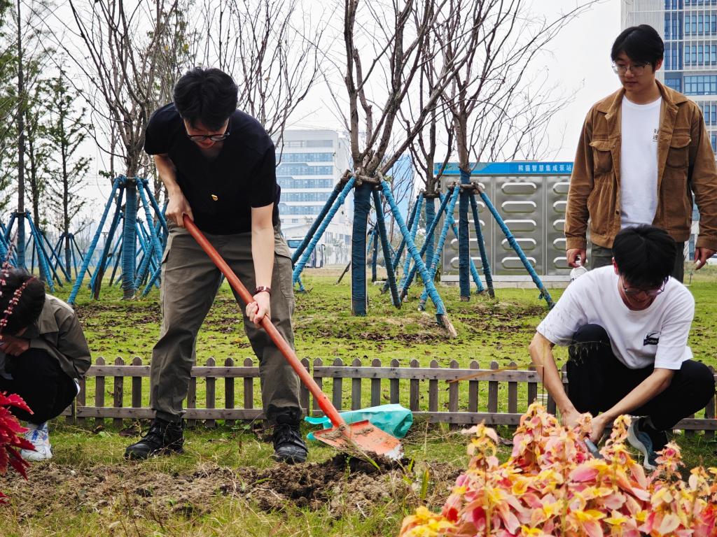 当天下午,全体学员首先参观了清源楼实验室以及温室花房,现场观看了课题组研究生进行的相关实验操作,了解实验室仪器设备与使用方法,通过参观,大家更深入了解科研实践,并充分感受到科研工作的创造性与严谨性,对培养创新精神和实践技能有积极推动作用。随后大家来到“宜路耕耘”劳动实践基地,分工协作,有的挥锄挖穴,有的播撒种子,有的挥锹培土,有的夯实土层,忙得不亦乐乎。鲜红的党旗与学员们忙碌的身影交相辉映,形成了一道靓丽的风景线。经过一下午的劳作,学员们表示对“幸福不会从天降,美好生活靠劳动创造”有了更加深刻的认识,切身体会到一粥一饭来之不易。