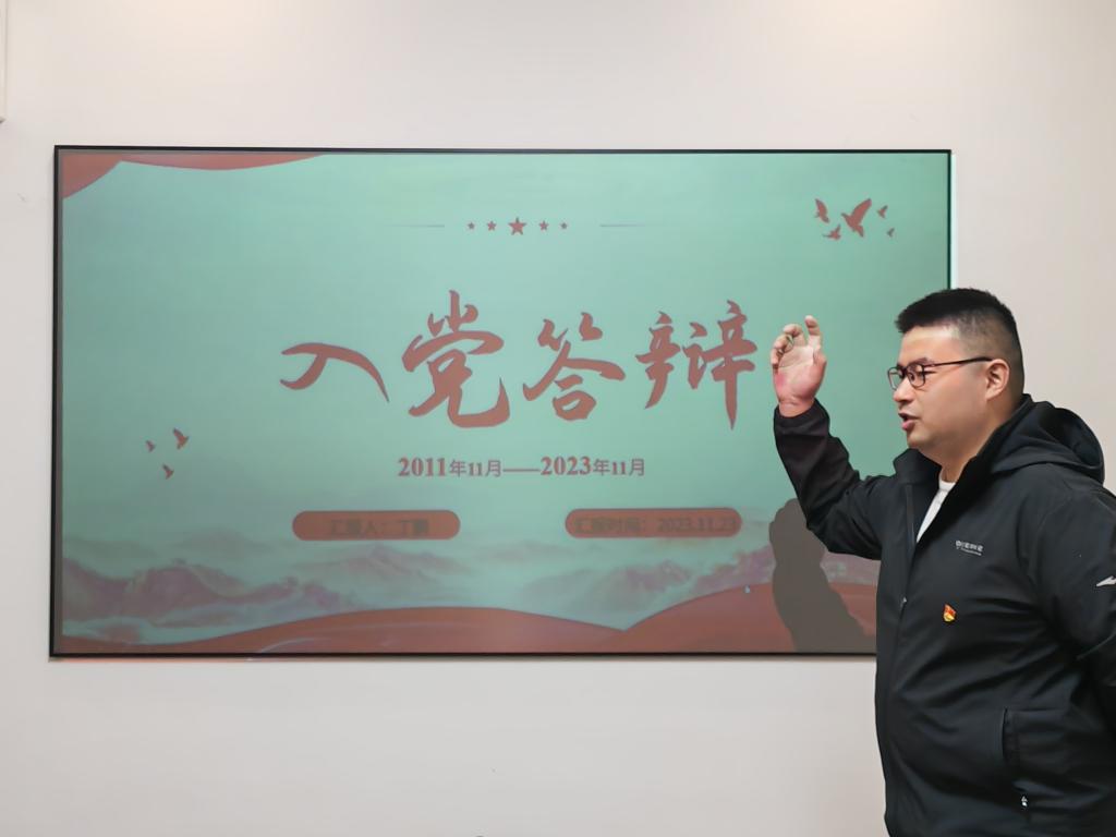 在完成个人陈述后,每位拟转正党员,进行抽题答辩,包含客观题与主观题,题目内容围绕习近平新时代中国特色社会主义思想、马克思主义,涵盖党章、党的基本知识、基本理论、党的二十大精神等,以督促8名同志进一步加强理论学习,坚定理想信念。8位拟转正同志认真进行答辩,展现出良好的理论素质与风采。