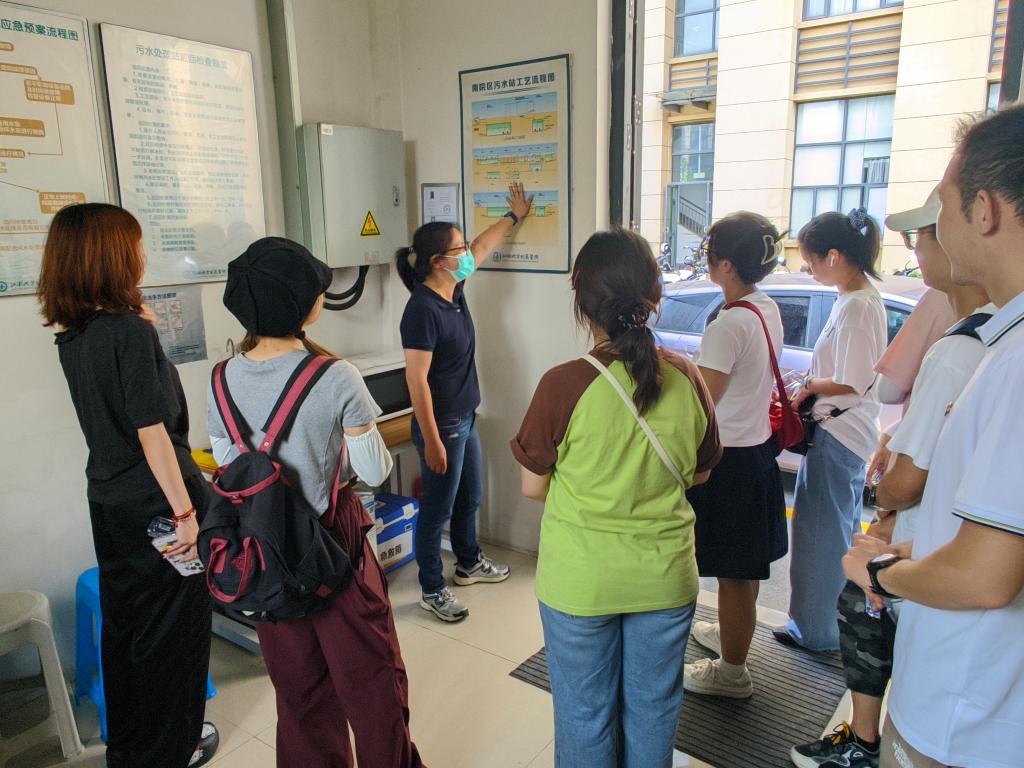 随后,蒋奕带领党员们走进PA视讯附属医院污水处理站,开展“聚焦医院污水治理,践行环保党建担当”活动。党员们通过走进PA视讯附属医院的污水处理区域,探究其背后应用的专业技术与管理理念,拓宽对污水处理领域实际工程的认知视野,在实践中增强环保意识与社会责任感。在医院专业工作人员的引导下,大家依次参观了污水处理设施的各个关键环节,工作人员详细介绍了污水处理的复杂工艺,如活性污泥法和膜生物反应器技术、次氯酸钠消毒方式等。期间,党员们积极踊跃提问,就医院污水处理中的技术难题、成本控制、运营管理等问题与工作人员展开了热烈的交流讨论。工作人员向我们给予了详细解答,并分享了实际工作中的经验与创新思路,如通过优化曝气系统、调整污泥回流比等方式来提高处理效果。