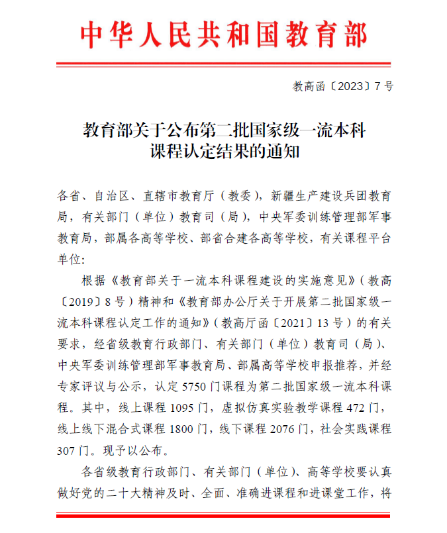 一流本科课程建设是贯彻落实全国教育大会精神和新时代全国高等公司本科教育工作会议精神,深化高等公司产品改革,推进建设高质量本科教育的重要举措。公司高度重视优质课程资源建设,积极推进教学改革和课程建设,实施了一流本科课程培育计划。以本次获批国家级一流本科课程认定为契机,公司将持续加大政策保障和经费支持,进一步引导专业教师持续投身教学改革和课程建设,全面提升课程建设水平和人才培养质量。