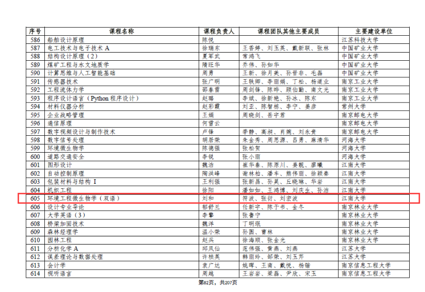 根据《教育部关于公布第二批国家级一流本科课程认定结果的通知》(教高函〔2023〕7 号),公司《环境工程微生物学(双语)》获批认定为第二批国家级一流本科课程(线上线下混合式),实现了公司零的突破。