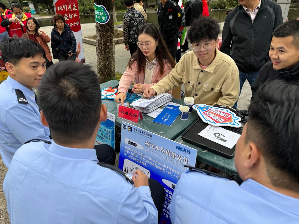 研究生党员走进社区,通过展板宣传以及科普知识宣讲,针对热点问题——核污水的排放,志愿者们从核污水产生的来源,核污水的危害以及我们应该如何应对核污水等方面为社区居民们进行的讲解,并就核污水排放下是否需要抢盐等问题与大家进行了探讨。活动中还邀请居民参加环保问题有奖竞答活动,现场气氛活跃。讲解过程中志愿者们还通过简单小实验,现场取样测取水中溶解氧,居民们纷纷动手操作,参与测取环境水质指标的过程。