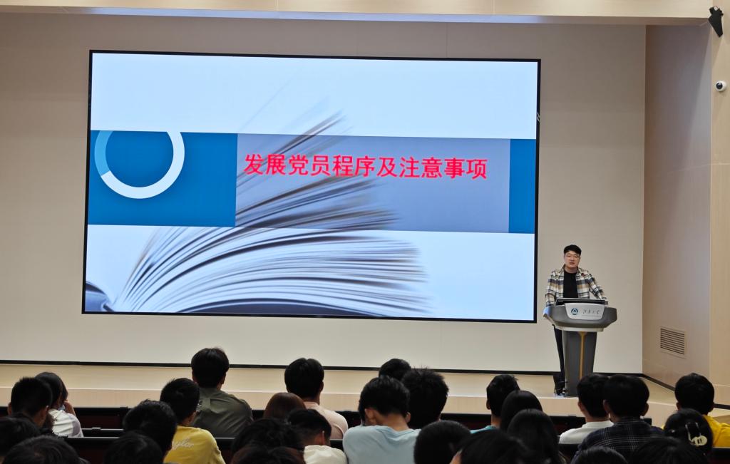 环科2201班赵星然作为积极分子代表进行发言,她表示将以党员标准严格要求自己,在工作和学习中不断向党组织靠拢,认真加强理论学习,提高党性、政治修养,发挥先锋模范作用;积极参加党组织活动,以入党作为人生重要目标,力争突破自己,以实际行动回报社会。