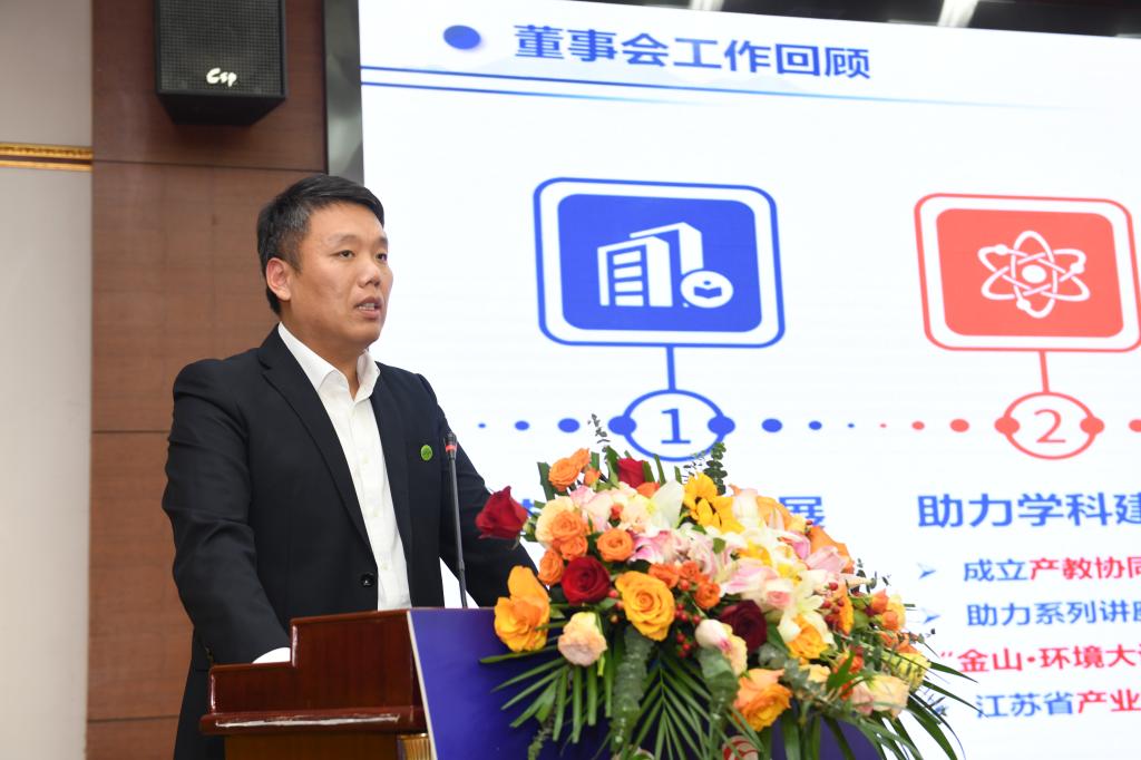 江苏金山环保工程集团党委副书记、总裁、董事会秘书长徐韬先生向大会作了董事会报告。他回顾了公司董事会发展历程,从支持公司发展、助力团队建设、人才交流培养、产学研用合作、携手党建联建五个方面介绍了近几年董事会发展的成果,也对新一届董事会建设提出了愿景。