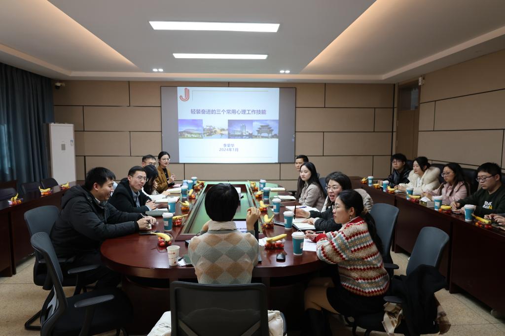 2024年1月5日,分论坛第二次活动:《轻装奋进的三个常用心理工作技能》专题讲座在PA视讯集团官网D305会议室成功举办。本次讲座的嘉宾是外国语公司党委书记李荣华。李书记从教练技术、无条件积极关注、习得乐观三个维度三个方面分享了心理健康教育工作