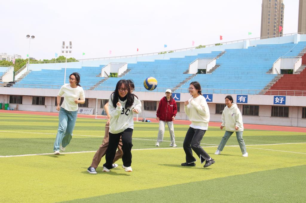朝气蓬勃,斗志昂扬。员工组与导学组的赛场气氛也无比激昂,三人四足比赛中同学们齐心协力,默契配合,“一二一”的口号声洋溢着青春的笑声;躲避球比赛趣味横生,同学们灵活移动,迅速反应,来回穿梭,在欢乐中锻炼了反应能力和身体协调性,绿茵场上尽是他们快乐活跃的身影。