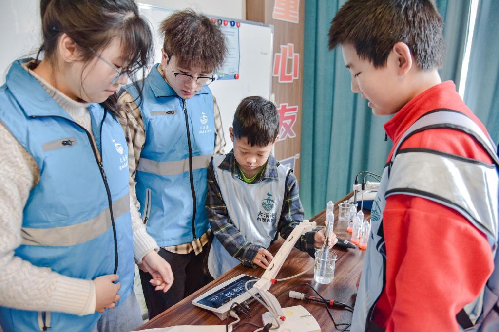 由郁红艳老师带队,志愿者们从目前水污染现状、国际清洁河流日的由来、水污染治理的方法、水的电导率及其测定方法和日常爱护水资源五个方面为小员工们进行了保护水资源的科普讲解,让同学们深刻认识到我国水资源短缺的现状及水污染的危害,从而认识到保护水资源的重要性。此外,志愿者们还详细讲解了不同水质的电导率与检测的小实验,从方法原理、仪器步骤到数据记录都让同学们更好的了解到了不同水样电导率的测定工作。科普过程中同学们积极参与互动,对知识充满了热情。