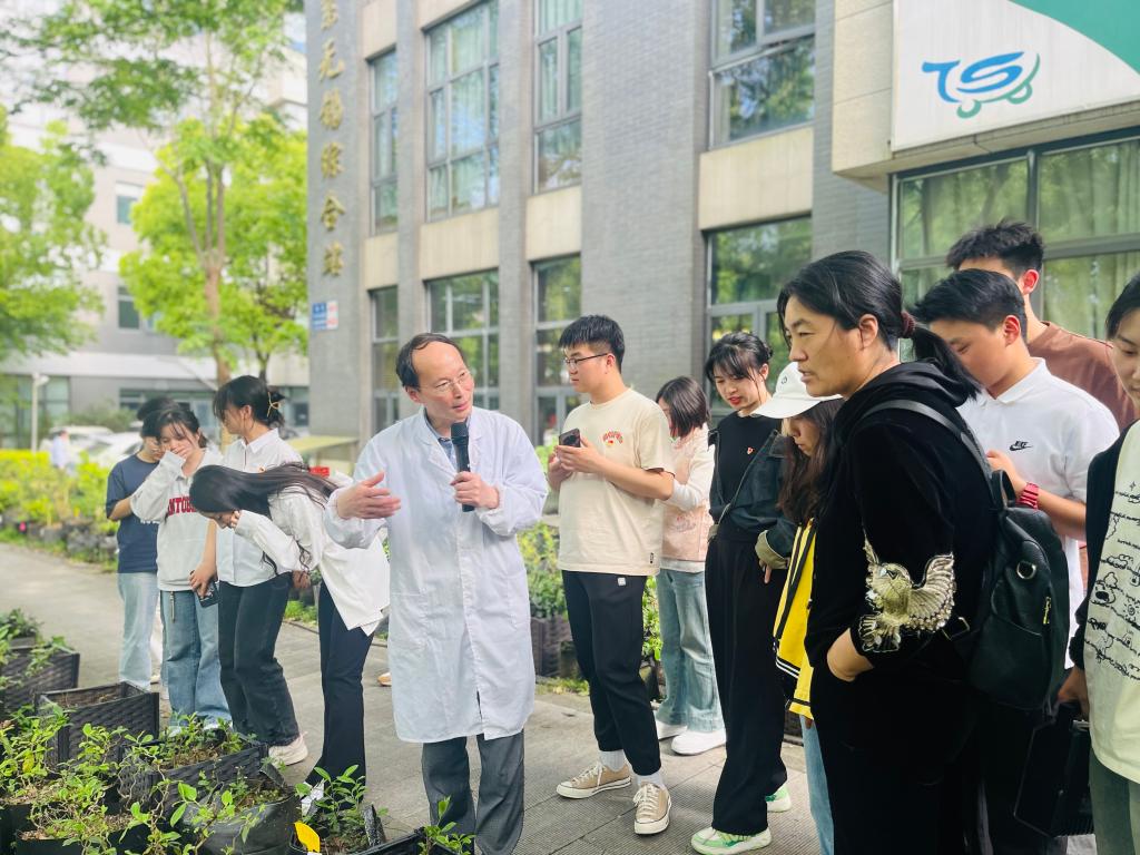 周书记带领师生党员参观茶树盆栽