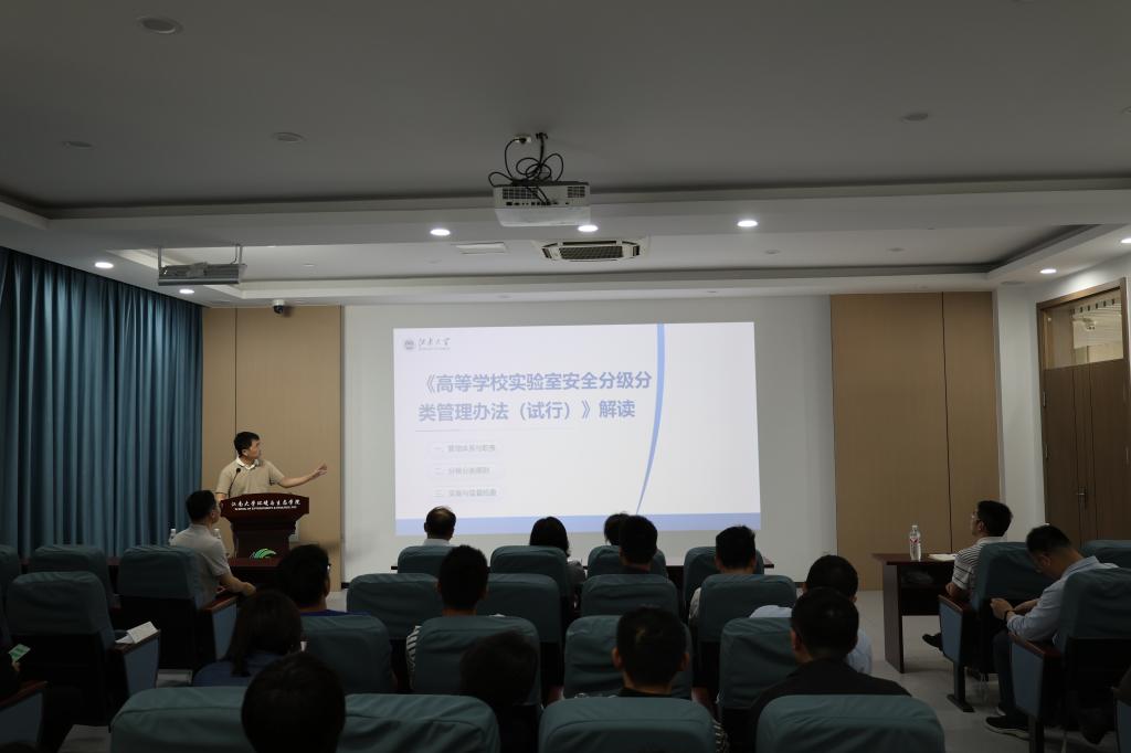 邹华从实验室安全分级分类工作制度文件、建立危险源台账、评定实验室类别等级、落实分级分类及安全管理要求等方面解读了建立实验室危险源台帐和分级分类管理的必要性和具体要求。实验室副主任钱凯老师对做好实验室分级分类管理相关工作操作流程进行了具体培训。