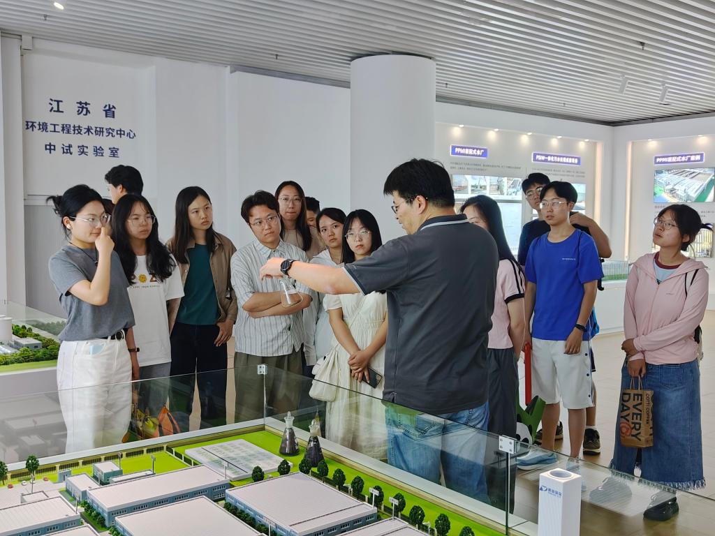 鹏鹞环保公司技术总监周国亚带领环境师生一行参观鹏鹞环保公司科技展厅和工作车间。参观期间,周国亚就鹏鹞公司发展历程、业务板块、资质荣誉、技术优势、项目案例等情况进行了详细介绍。鹏鹞环保公司创立于1984年,是中国环保产业开拓者,是一家以建设工程施工、建设工程设计、餐厨垃圾处理、发电业务、输电业务、供(配)电业务、输电、供电、受电电力设施的安装、水污染治理;污水处理及其再生利用的优质企业。