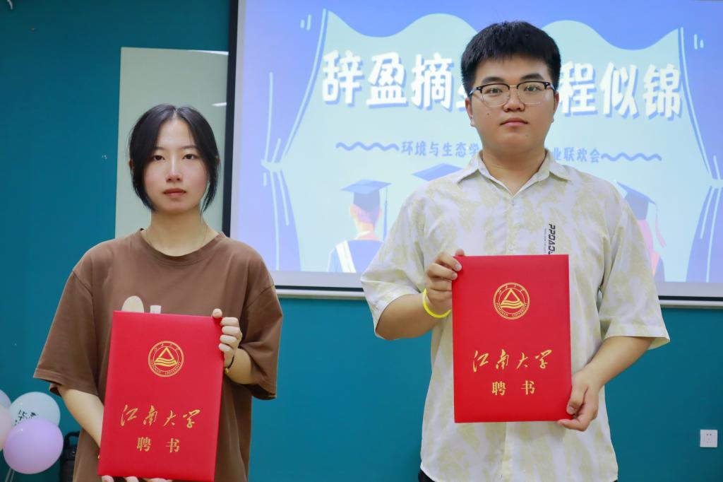 联欢会上开展了包括“你划我猜”、“动作接龙”在内的一系列游戏互动环节,毕业生们积极参与,现场气氛热烈,笑声和欢呼声此起彼伏。形式独特的抽奖环节更是将联欢会推向了高潮,座位下的“惊喜”、抢红包“手气王”,丰富多样的奖品寄托着公司对毕业生们的美好祝愿。活动最后,进行了员工联络人聘用仪式,选聘毕业班班长白雪佳、成厚儒为2024届环境公司员工联络理事,以期在未来能够更好地团结“天下江南人”。
