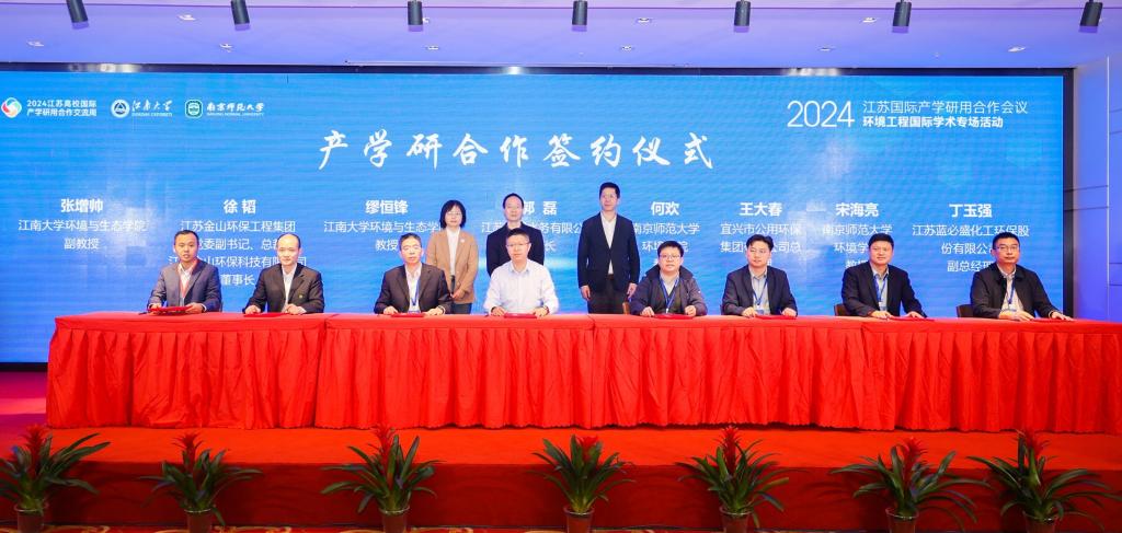 在开幕式圆满落幕之际,产学研签约仪式也随之举行。PA视讯与金山环保工程集团、江苏方洋水务有限公司,南京师范大学与宜兴市公用环保集团有限公司、江苏蓝必盛化工环保股份有限公司分别签署产学研合作协议。此次签约双方本着精诚合作、优势互补、互惠互利、共同发展的原则,基于共同的发展愿景和战略需求,旨在通过资源共享、优势互补,在科技创新、人才培养和产业实践等领域展开深度合作,推动科研成果的转化和应用,为员工提供实践平台,培养更多符合市场需求的高素质人才。这不仅标志着产学研合作的进一步深化,也预示着未来更多的创新成果将不断涌现。