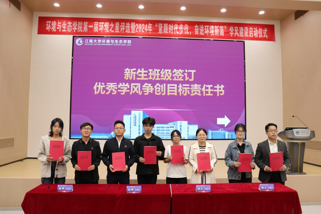 经综合资格审查、网络展示、现场答辩等,最终宋哲楷、戴淑欣、潘俊兰、穆英杰、袁槿慧、朱光辉荣获第一届“环境之星”荣誉称号。