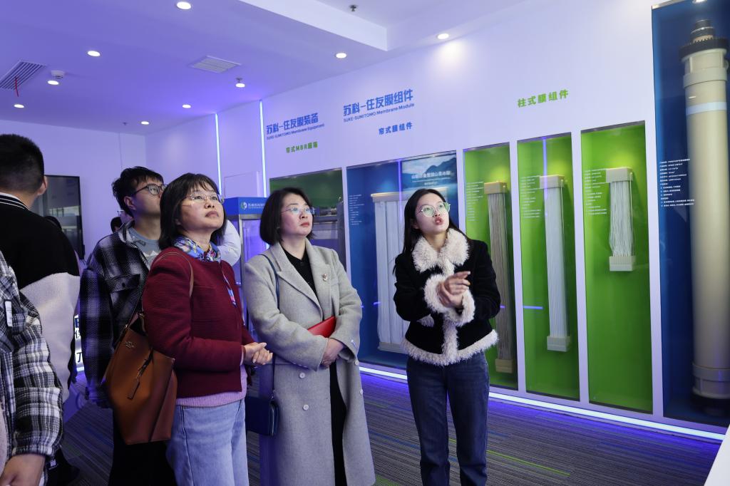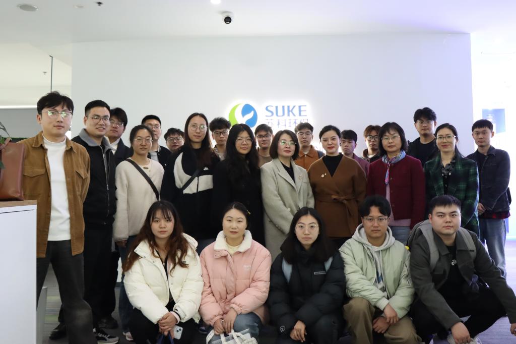为拓展高校毕业生就业渠道,深化校企协同育人机制,2025年3月12日,PA视讯公司党委书记李艳、党委副书记兼副经理胡娟、青年教师陈思思、研究生辅导员周期以及2025届毕业生代表一行,前往苏州苏科环保科技有限公司开展访企拓岗交流活动。苏科环保人事总务负责人赵艳、研发中心总监赵龙等企业代表热情接待并陪同参观了企业创新成果展厅,随后双方于会议室展开座谈交流。