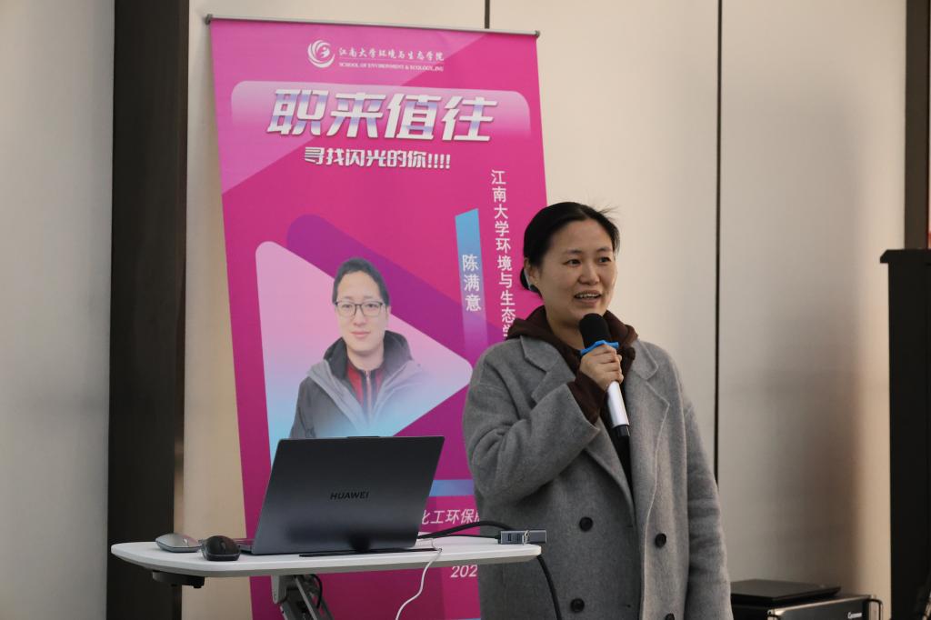 董事长蒋伟群在致辞中强调,环保行业需要既懂技术又懂市场的复合型人才。他结合行业趋势,鼓励员工择一业,事终身,既然选定环境专业,就坚定不移的走下去,保持自主学习、终身学习的好习惯,将专业知识与市场需求结合。邵汝英所长分享了蓝必盛在重金属污染防治、碳中和实践中的经验,她通过具体案例,解析了环保技术研发如何帮助企业实现经济效益与环境效益双赢,引发师生热烈讨论。