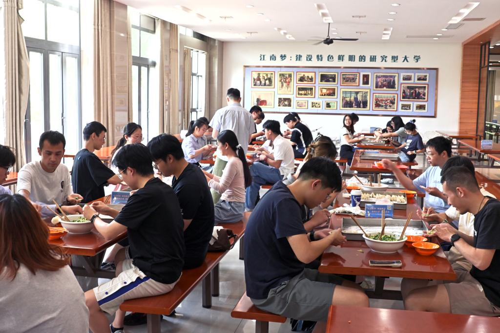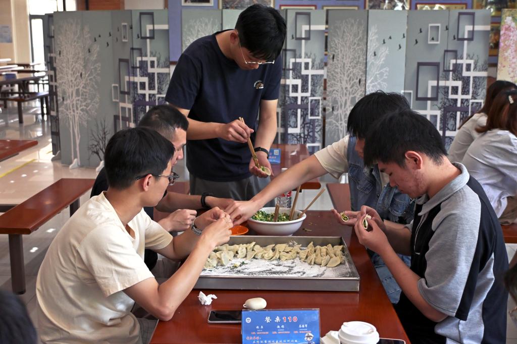 活动现场充满了浓浓的节日氛围,食堂工作人员提前准备好了新鲜的食材,同学们迅速投入到包饺子的欢乐之中。活动开始后,同学们自发结成小组,热情投入其中:有人手法娴熟,一捏一合间玲珑饺子便跃然掌上;有人虚心求教,在工作人员以及老师的指点下渐入佳境;还有人别出心裁,尝试着捏出不同形状的创意饺子,引来阵阵欢笑。同学们边动手边交流,畅谈家乡的端午习俗,分享学业心得与未来理想。欢声笑语间,一个个形态各异的饺子摆满了托盘,承载着大家满满的热情与期待。