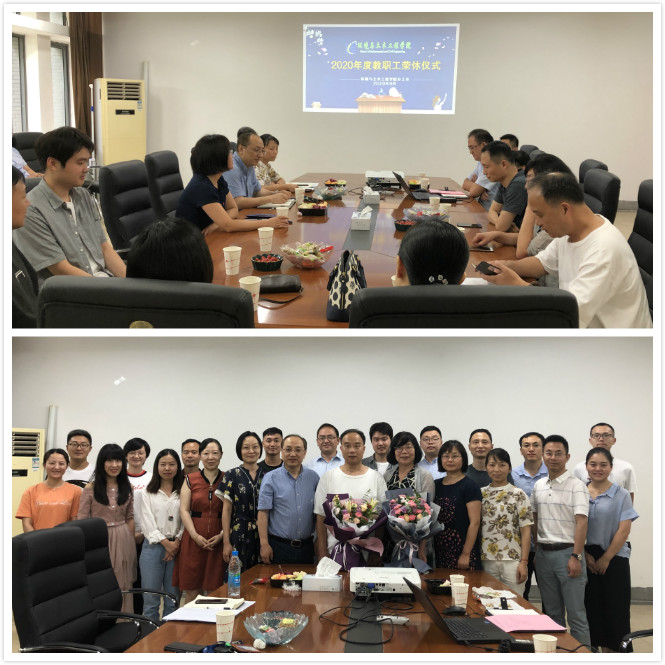 2020年6月19日下午,环境与土木工程公司在公司D305会议室为今年退休的老师举行荣休仪式。公司党委书记李艳、经理王震宇、公司党委副书记金明媚和公司教师代表参加,荣休仪式由院工会主席杨士建老师主持。